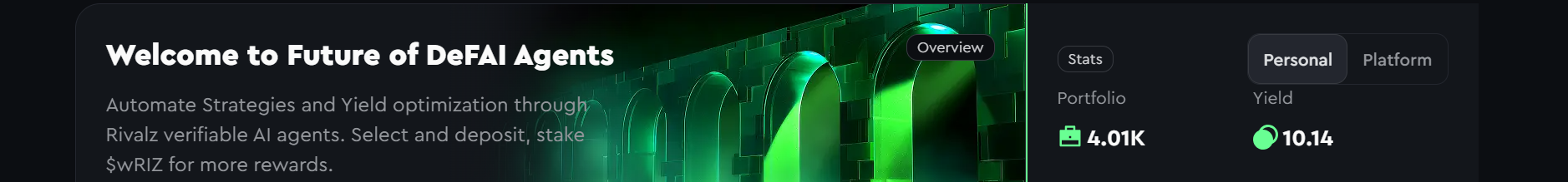 MOZAI uses a dual-rewards model: you earn $USDC yield from DeFi, plus additional upside in $wRIZ from the Rivalz ecosystem.