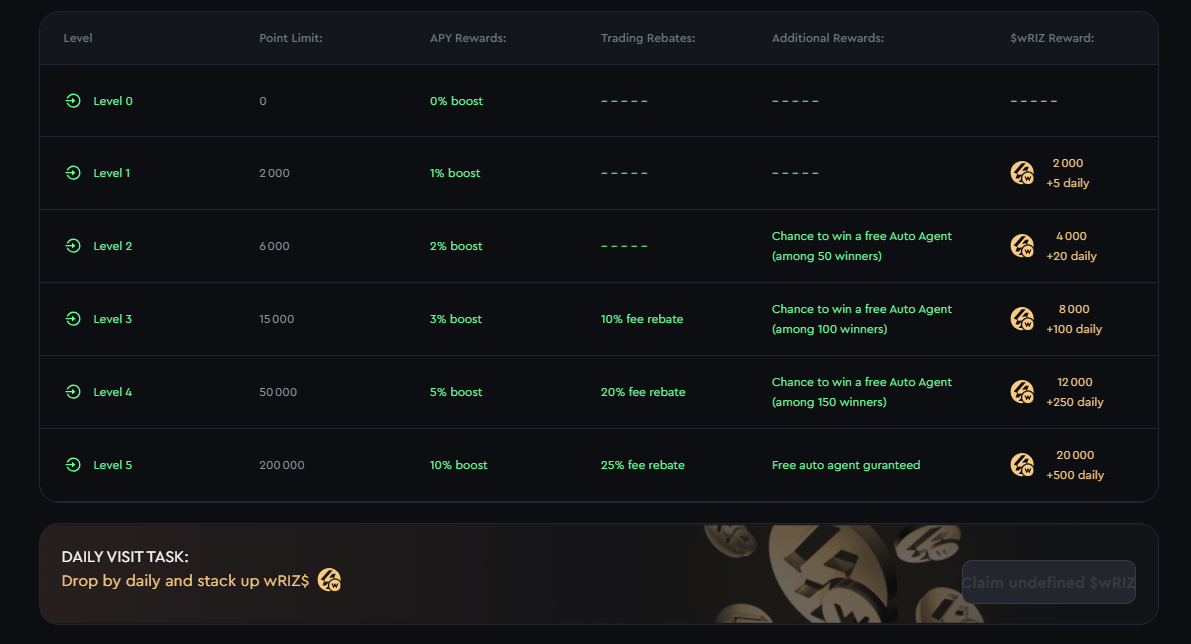 - All AutoAgents Transactions → $1,000 in $RIZ rewards (duration: 1 month, starting Sept 3).